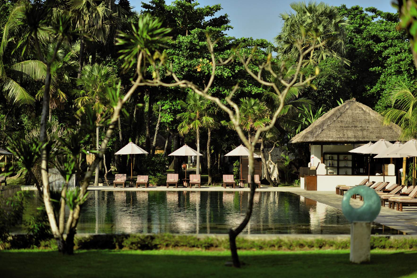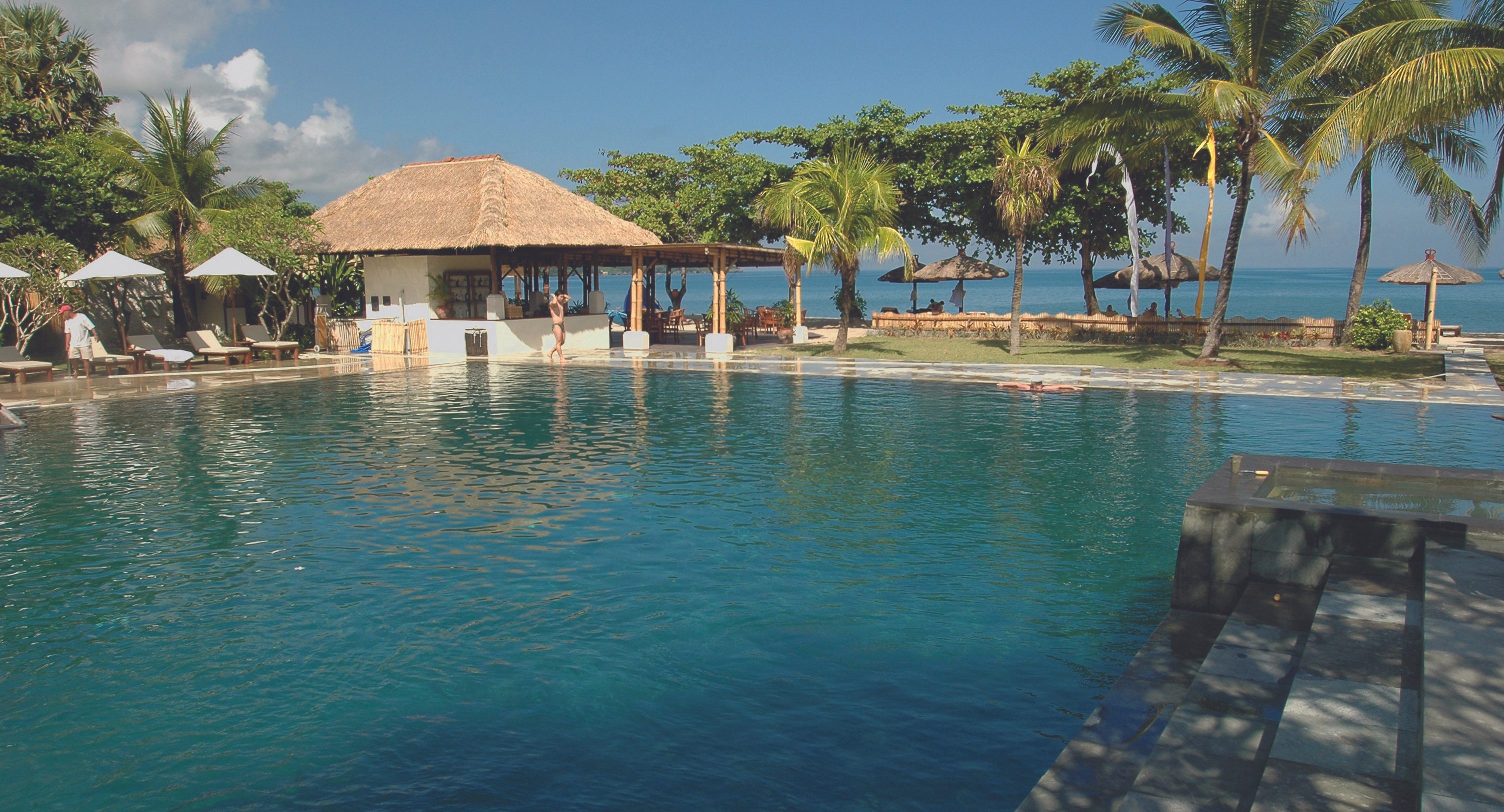 four outdoor, covered treatment areas, very romantic and perfect for couples, have double whirlpool bath terrace, full range of treatments including traditional Balinese and Indian Ayurvedic techniques.Swimming Pool