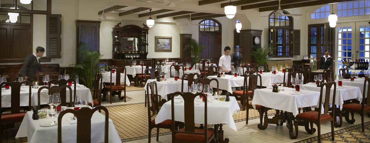 Combining the best of the local culture and cuisine with dishes from around the world, each of our restaurants and bars at Raffles Singapore has its own unique atmosphere and setting:
