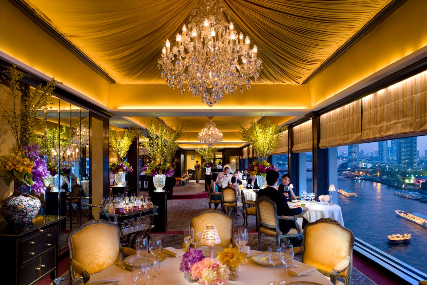One of the best-loved French restaurants in Asia, Le Normandie offers a delicious fine dining menu and an exceptional wine cellar. Situated in the Garden Wing of the hotel, the restaurant frequently entertains the highest echelons of Thai high society from celebrities and politicians to members of the Royal Family. Offering stunning views over the river through floor-to-ceiling windows, the restaurant enjoys an elegant feel with large chandeliers, round tables and stunning flower arrangements. Diners are offered the choice of a set or à la carte menu specialising in exemplary seafood and exquisite meat dishes. Ladies are kindly asked to wear elegant attire and footwear. Gentlemen are kindly asked to wear smart shirt, long trousers and closed shoes. A jacket is compulsory for men during dinner (can be provided upon request). Children above the age of 12 are welcome to join. The dress code also applies to children.Sala Rim Naam