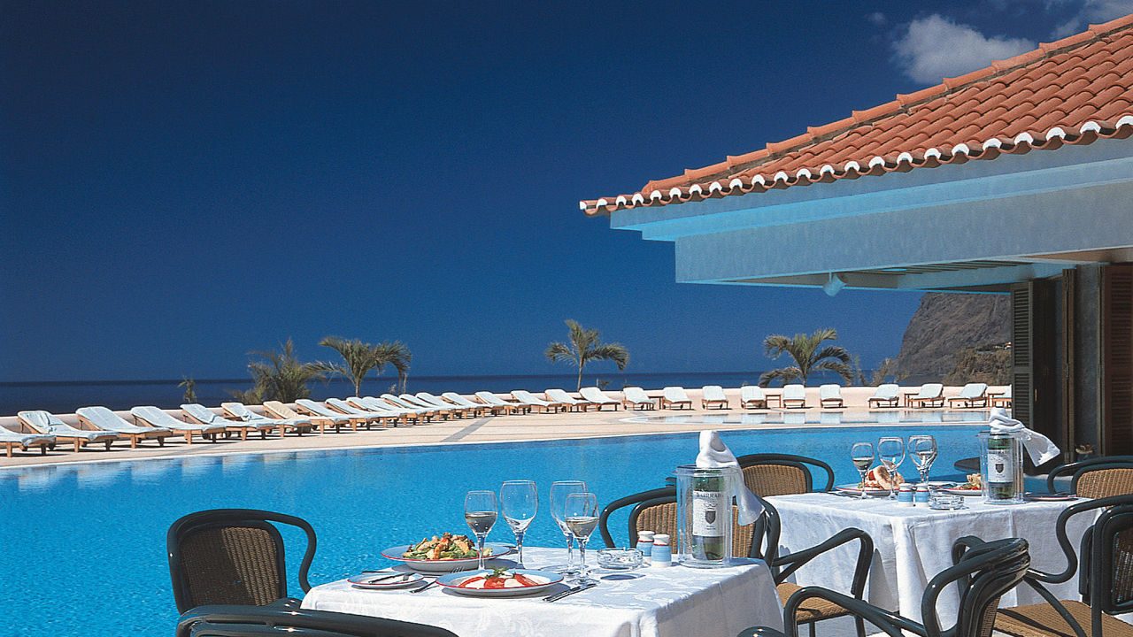 Situated around three miles west of Funchal, this hotel enjoys a magnificent location with panoramic views of the ocean to the front and the mountains to the rear. It is built in traditional Portuguese colonial style and surrounded by magnificent tropical gardens with waterfalls, small lakes and exotic flowers.