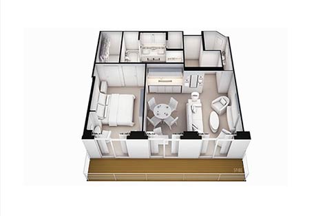Enjoy the elegance and sophistication of custom-crafted furnishings, exotic stones and polished woods, designer accessories, eclectic lighting and original artworks throughout. As well as the comforts of a spacious walk-in wardrobe, a grand marble and stone detailed washroom, and the fine details of having your mini-bar personalised with your favourite beverages.