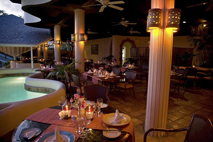 Sweeping views and Italian cuisine with an elegant Caribbean twist are the draw at Piccolo Mondo. Its diverse menu features special items such as veal scaloppini Milanese and grilled catch of the day on saffron risotto. The restaurant’s striking hillside setting and romantic ambience is perfect for an intimate, relaxing dining experience. For a $40 per person surcharge, you can celebrate that special occasion or romantic evening looking out at the Caribbean Sea.* Dinner Dress Code